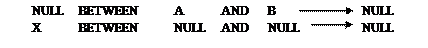 1) Якщо вираз, що перевіряється, має значення NULL, або якщо обидва вирази, що визначають діапазон, дорівнюють NULL, то перевірка BETWEEN ... AND… дає результат NULL.