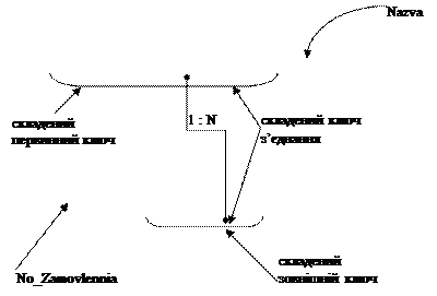 Стовпчики Tovar і Vyrobnyk в таблиці Zamovlennia утворюють зовнішній ключ для зв’язку із таблицею Tovary і зв’язані із її стовпчиками Kod_Tovaru і Kod_Vyrobnyka відповідно.