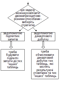 До якої би категорії не відносився запит – єдине правило: чим менше таблиць (в декартовому добутку) – тим швидше буде виконуватися запит.