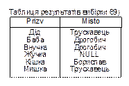 Наведені результати запиту отримаються за допомогою принципово іншої операції з’єднання, яка називається зовнішнє з’єднання таблиць (в прикладі 69) воно позначається *=). Ті з’єднання, які розглядалися до цих пір, називаються внутрішнє з’єднання таблиць.