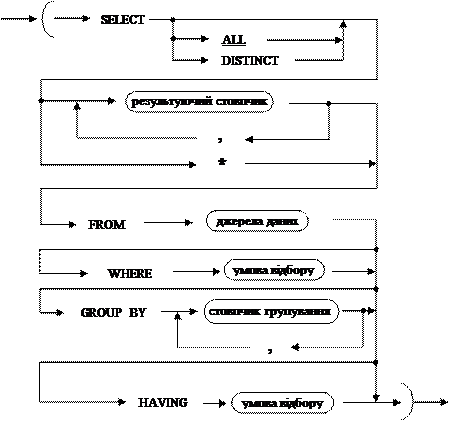 Синтаксична діаграма підлеглого запиту: