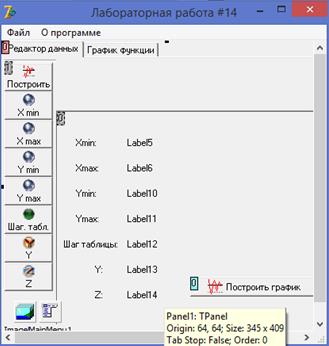 Постановка задачи : Разработать программу, поддерживающую различные управления вычислительным процессом с помощьюTPageControl, TtabSheet, TСhar, Стандартные диалоговые компоненты, ТPopupMenu, TMainMenu, TtoolBar и др. на примере л.р. №8.