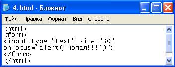 Задание 5. Реакция на установку фокуса: появляется сообщение «Попал!!!»