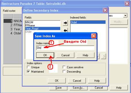 Индексирование полей может быть выполнено как в процессе описания их структуры (т.е. в процессе создания структуры таблицы), так и после сохранения таблицы как файла.