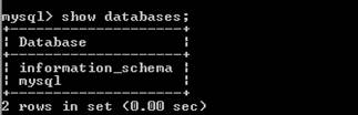 За замовченням, на сервері баз даних уже є дві створені бази даних, які можна переглянути командою show databases,яку будемо використовувати і надалі для перегляду наявних баз даних (Рисунок 3).