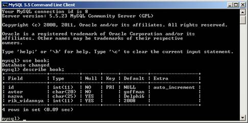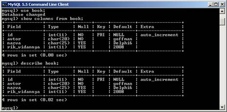 Рисунок 5. Перегляд полів таблиці book