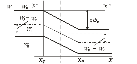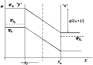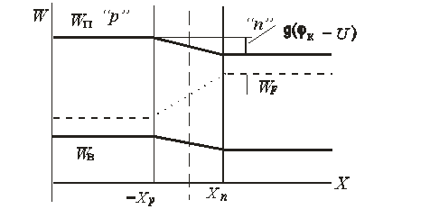 Подставляя в формулу (1.11) вместо контактной разности потенциала значение высоты потенциального барьера, соответствующее нарушению равновесия, получаем