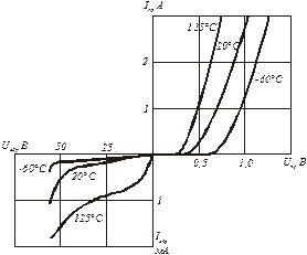 Воль-тамперная характеристика германиевого диода при различных температурах окружающей среды изображена на рис. 2.4.