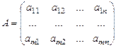 Матрицей А размера m ´ n называется прямоугольная таблица чисел, состоящая из m строк и n столбцов: