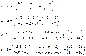 того же порядка, каждый элемент которой равен сумме соответственных элементов матриц А и В: