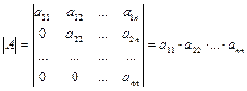 6. Определитель треугольной матрицы (матрицы, у которой все элементы, расположенные по одну сторону одной из диагоналей, равны нулю) равен произведению элементов данной диагонали: