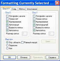 Изменить описанные параметры можно и в диалоговом окне Вид осей, которое появляется, если щелкнуть дважды на самой оси.