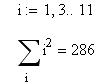 После набора знака равенства появляется результат суммирования. При суммировании индекс суммирования меняется с шагом 1.