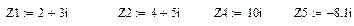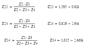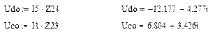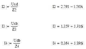 Вначале все комплексные величины, заданные в показательной форме, переведём в алгебраическую форму, в которой MathCAD производит все вычисления (версии MathCAD-2000 и выше эта операция производится автоматически).