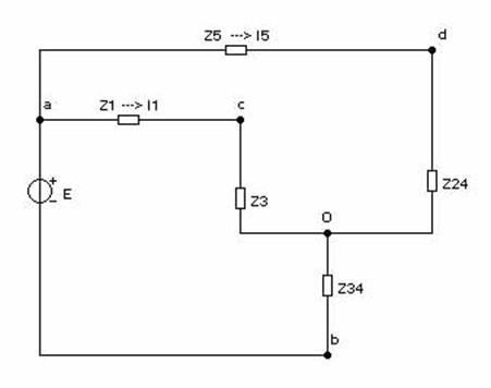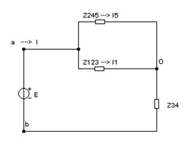 Эквивалентное сопротивление относительно узлов a, b равно сумме сопротивлений z1_5 и z34: