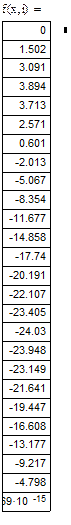 6. Ниже этой формулы наберите F(x,i) и введите знак « = ». Появится таблица значений функции (Рисунок 4).