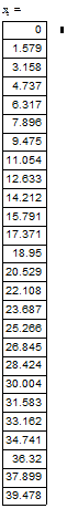 Задача 5. Вычисление дискретной функции с дискретным аргументом. Построить таблицу значений функции на отрезке [0, 4p2].