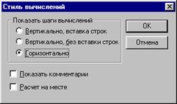 Стиль Вычислений... — задать вывод результата символьной операции под основным выражением, рядом с ним или вместо него (Рисунок 9).