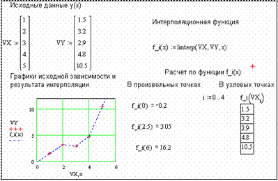 Рис. 22Проведениекусочно-линейной интерполяции в MathCAD