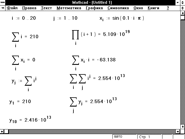 Оператор суммирования вычисляет сумму выражений по всем значениям индекса. Оператор произведения работает аналогичным образом — вычисляет произведение выражений по всем значениям индекса.