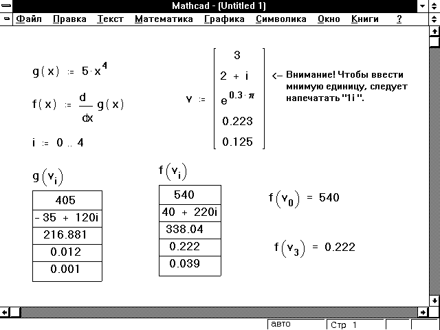 На Рисунке 4 показаны примеры дифференцирования в Mathcad.
