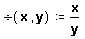 Здесь определён оператор, который ведет себя совершенно аналогично определяемой пользователем функции, описанной в Главе 6. Вообще говоря, можно напечатать ё в рабочем документе и увидеть результат 0.5 по другую сторону от знака =. Различие между функциями и операторами лежит не столько в способе их определения, сколько в способе их отображения. Это обсуждается в следующем разделе.