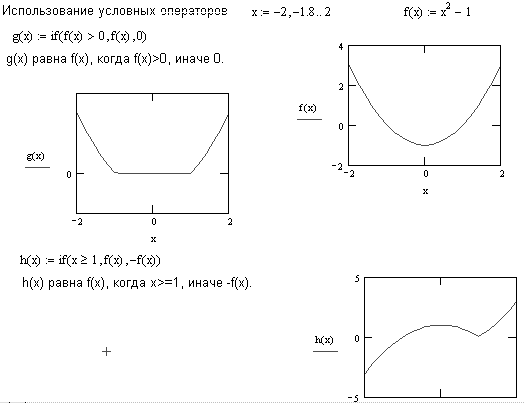 В Mathcad PLUS можно использовать возможности программирования для выполнения логических ветвлений и циклов в вычислениях. См. описание возможностей программирования Mathcad в Главе "Программирование".