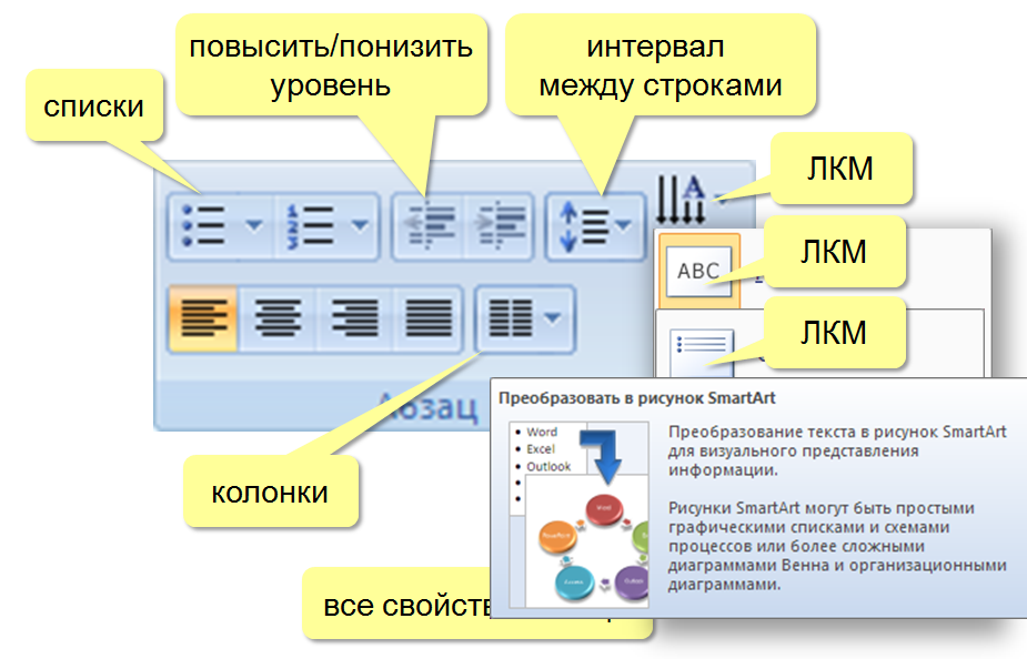 1. Для создания маркированного списка, на вкладке Главная в группе Абзац щелкните кнопку Маркированный список
