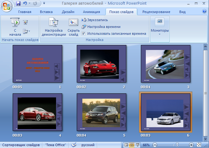 Наша работа будет состоять из 6 слайдов. Создадим эти слайды, применив шаблон разметки для 1 слайда – Титульный, для последующих – Пустой слайд. Для каждого из этих объектов задаются: фон, текст, рисунки (изображения), кнопки и переход слайда.