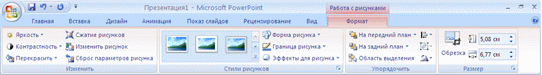 2. На панели Работа с рисунками на вкладке Формат в группе Изменить выберите Сжать рисунки.