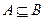Определение. Говорят, что множество содержится во множестве ( подмножество , включено в , содержит или включает ), если всякий элемент множества принадлежит и множеству . В этом случае пишут: . Таким образом, .