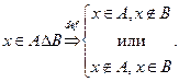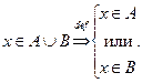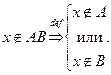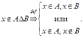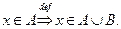 Непосредственно из определения операции объединения следует справедливость и такого утверждения: если то элемент принадлежит объединению множества со всяким другим множеством Будем писать так:
