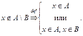 Определение. Разностью множеств и называется множество, состоящее из тех и только тех элементов, которые принадлежат множеству и не принадлежат множеству :