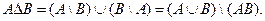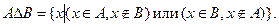 Определение. Симметрической разностью (или ) множеств и называется множество, состоящее из тех и только тех элементов, которые принадлежат ровно одному из данных множеств.