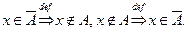 Определение. Дополнением ( ) множества до универсума называют множество, состоящее из тех и только тех элементов, которые не принадлежат