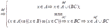 объединение состоит из тех и только тех элементов, которые входят хотя бы в одно из данных множеств (пересечение содержит те и только те элементы, которые входят во все множества одновременно). Запишем обобщение законов дистрибутивности и де Моргана: