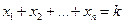 Пример 2.3.7. Число неотрицательных целых решений уравнения равно , ведь всякое решение данного уравнения можно трактовать как сочетание с повторениями, содержащее элементов первого типа ( элементов второго типа ( …, элементов -го типа (