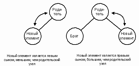 Процесс вставки элементов сканирует путь и завершается, встретив родителя, имеющего значение меньшее, чем новый элемент, или достигнув корневого узла. Так как у корневого узла нет родителя, новое значение помещается в корень.