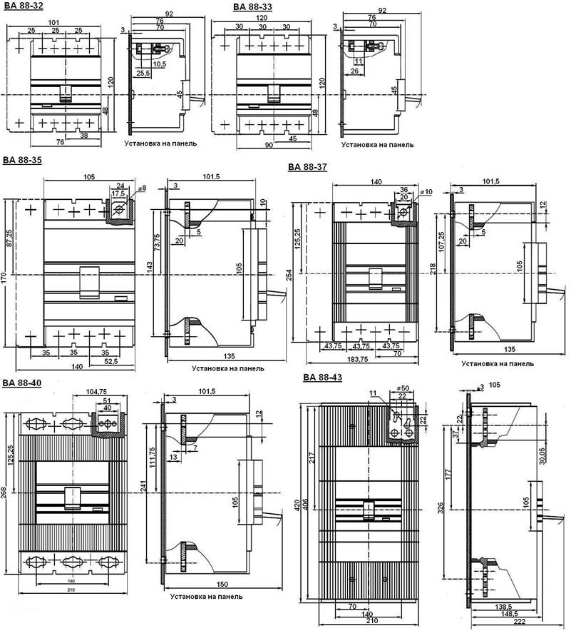 · Габариты и вес - на 10-20% меньше аналогичных выключателей других отечественных производителей, что позволяет монтировать шкафы и щиты меньшего размера. Кроме того, малые размеры делают возможным замену старых автоматических выключателей на выключатели серии ВА88