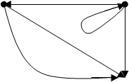 Пример. Рассмотрим граф на рис. 8. Пути длины 1 представлены дугами. Все пути длины 2 и более выходят из вершины 2. Путь длины k из вершины 2 в вершину 2 представляет собой петлю, повторенную k раз. Остальные пути получаются как комбинации путей длины 1 и 2 с соответствующим силом повторений петли.