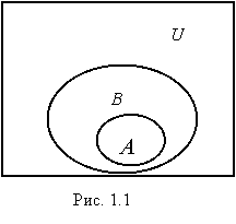 При графическом изображении множеств удобно использовать диаграммы Венна , на которых универсальное множество обычно представляют в виде прямоугольника, а остальные множества в виде овалов, заключенных внутри этого прямоугольника (рис 1.1).