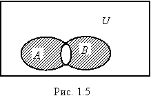 Определение 1.5.Объединением множеств A и B (обозначение A ÈB) называется множество элементов x таких, что x принадлежит хотя бы одному из двух множеств A или B (рис 1.2). Символически это можно записать следующим образом: