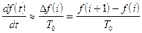 При малых тактах квантования разностные уравнения можно получать из дифференциальных путем дискретизации последних [2]. В частности, дифференциалы могут приближенно заменяться правыми разностями:
