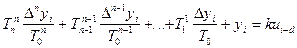 Если система регулирования реализуется на ЭВМ, то необходимо дискретное (цифровое) представление динамических моделей. В этом случае согласно выражениям (1) непрерывному дифференциальному уравнению (2) соответствует конечно-разностное уравнение