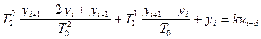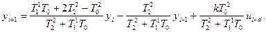 Уменьшая текущий индекс такта квантования на единицу в левой и правой частях уравнения (13), получим конечно-разностное уравнение второго порядка, удобное для практического использования: