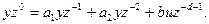 Использование оператора сдвига позволяет получить из конечно-разностного уравнения передаточную функцию в - преобразовании. Используя соотношения (15) для уравнения второго порядка (14) получим