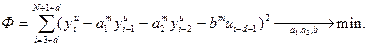 Для решения поставленной задачи воспользуемся методом наименьших квадратов (МНК), широко применяющимся для параметрической идентификации моделей объектов регулирования. Критерием МНК является наилучшее совпадение переходных процессов и , определяемое выражением: