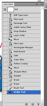Говоря о панелях программы следует упомянуть панель История (History), Пользуясь ею можно вернуться к любому предыдущему состоянию изображения, созданному в течение текущего сеанса работы. Каждый раз при внесении изменений в изображение новое состояние изображения добавляется на эту панель (рис. 14).