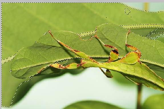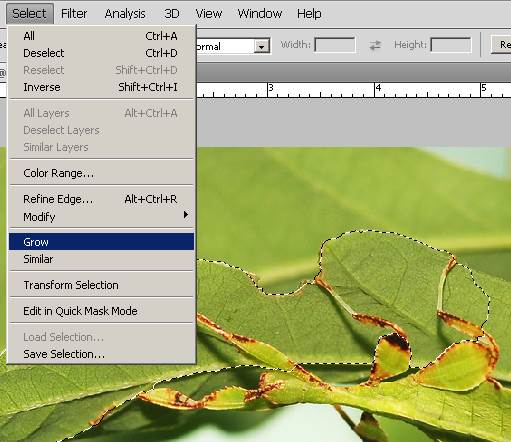 Рисунок 27. меню "Выделение" > "Смежные пиксели" для включения в выделенную область всех смежных пикселей, которые попадают в диапазон допуска, установленный в параметрах инструмента "Волшебная палочка".