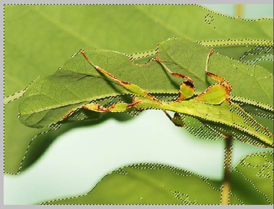 Рисунок 28. меню "Выделение" > "Подобные оттенки" для включения из изображения в выделенную область пикселей, необязательно смежных, попадающих в диапазон допуска.